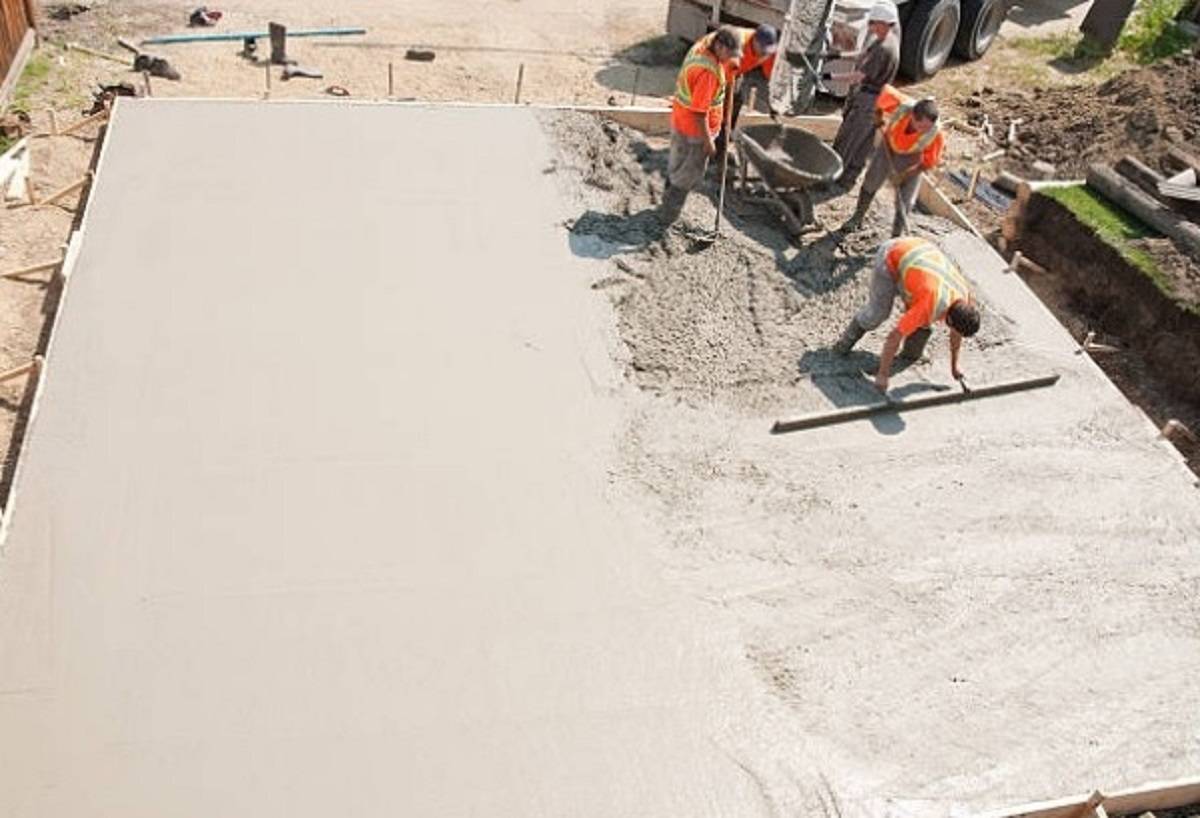 Яркий пример конструкции этого вида – отмостка по периметру здания. Поэтому для обустройства подобных сооружений необходимо использовать марку бетона для стяжки М150 и обязательно зажелезнить поверхностный слой. Пропорции стяжки под бетон, эксплуатируемой в условиях открытого воздуха: