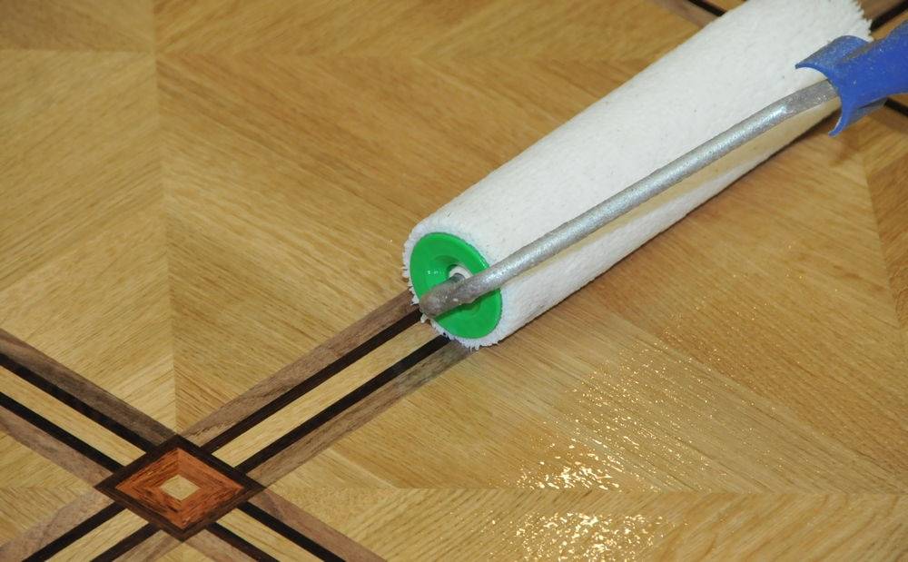 Наносим лак на паркет с помощью валика