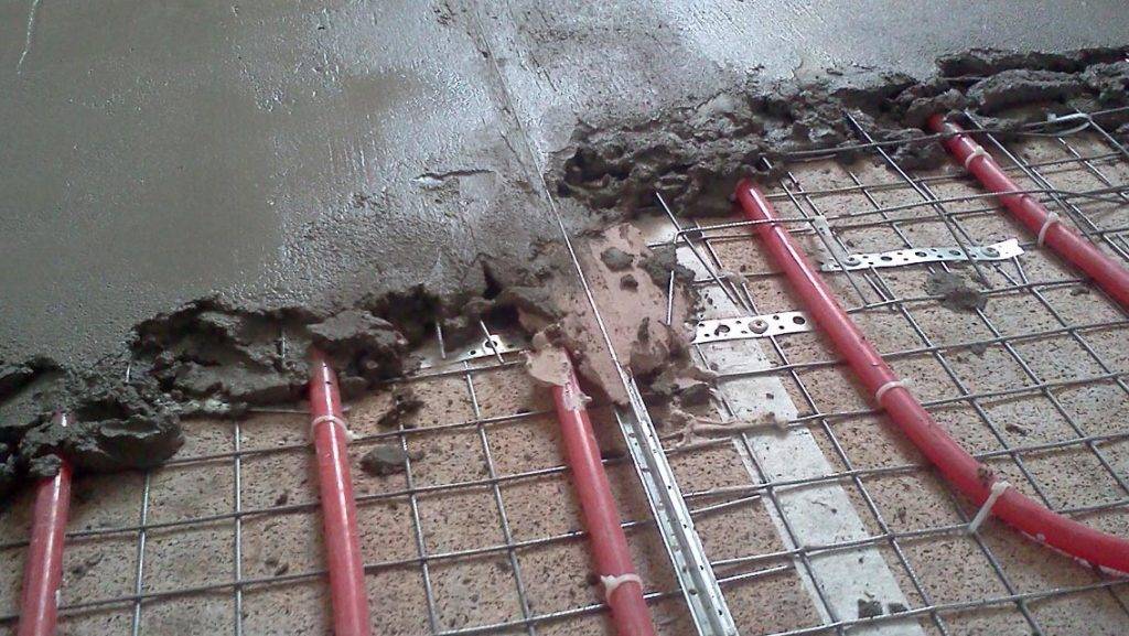 После размещения труб заливают чистовой пол раствором с пластификатором и мелкими фракциями щебня. Можно также воспользоваться нивелирующими смесями.