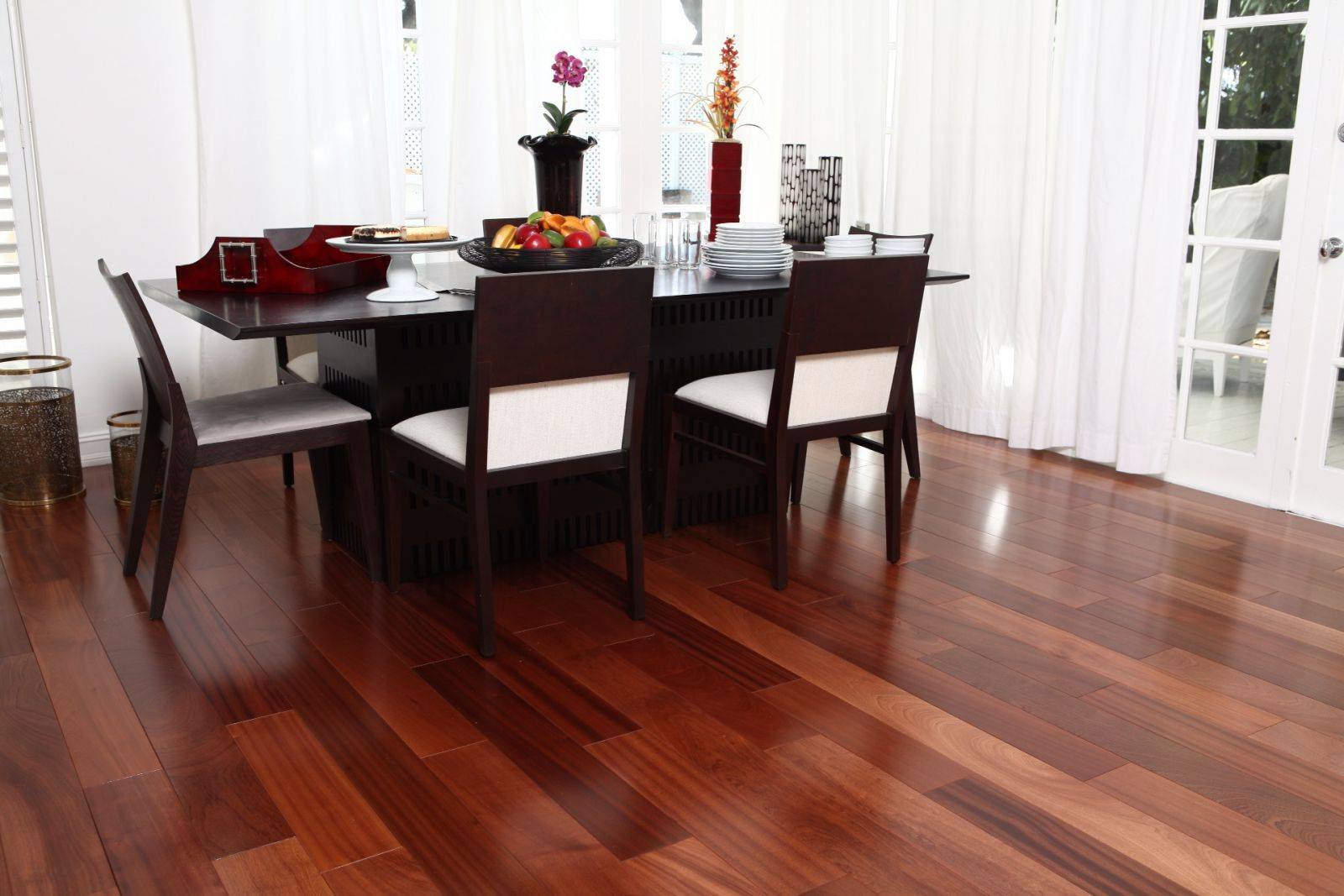 Экзотическая древесина из отдаленных регионов мира (включая мербау, тик, венге, ироко, тауари, дусси, палисандр, кемпас) очень популярна у нас. Экзотические паркетные полы бывают разных красивых натуральных цветов: от соломенного и медового, красного и бордового до оттенков коричневого и даже черного. Именно поэтому они так легко соответствуют цвету интерьера. Дополнительным преимуществом такого пола является необычное зерно из европейской древесины.