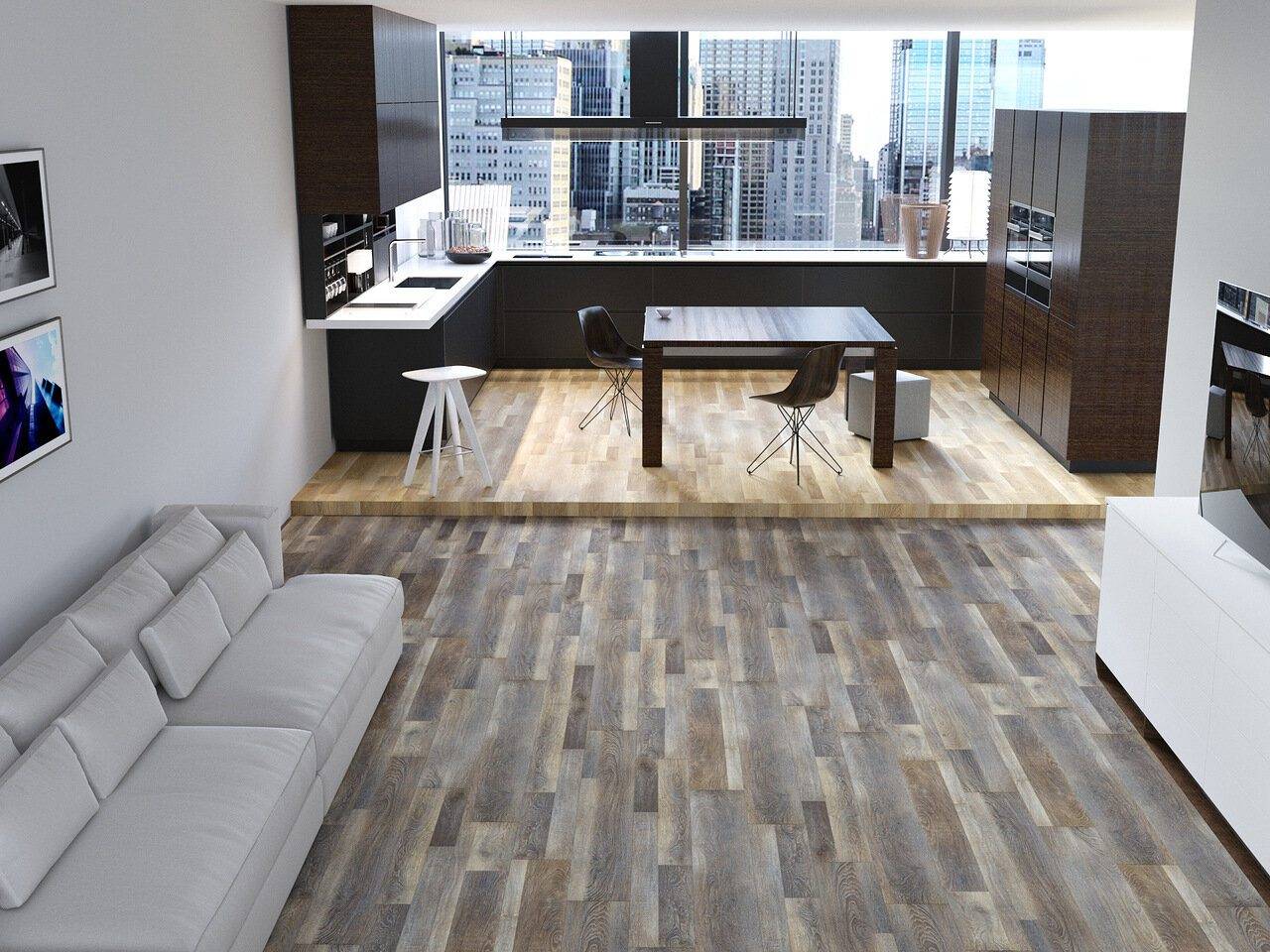 Доска, паркет с природными изъянами, фактурность дерева разнообразят, сделают интерьер выразительным. Это вневременные материалы, созданные природой. Имитации натуральных напольных покрытий заменят паркет, массивную доску, камень. Все варианты подходят для отделки полов в квартирах и частных домах.