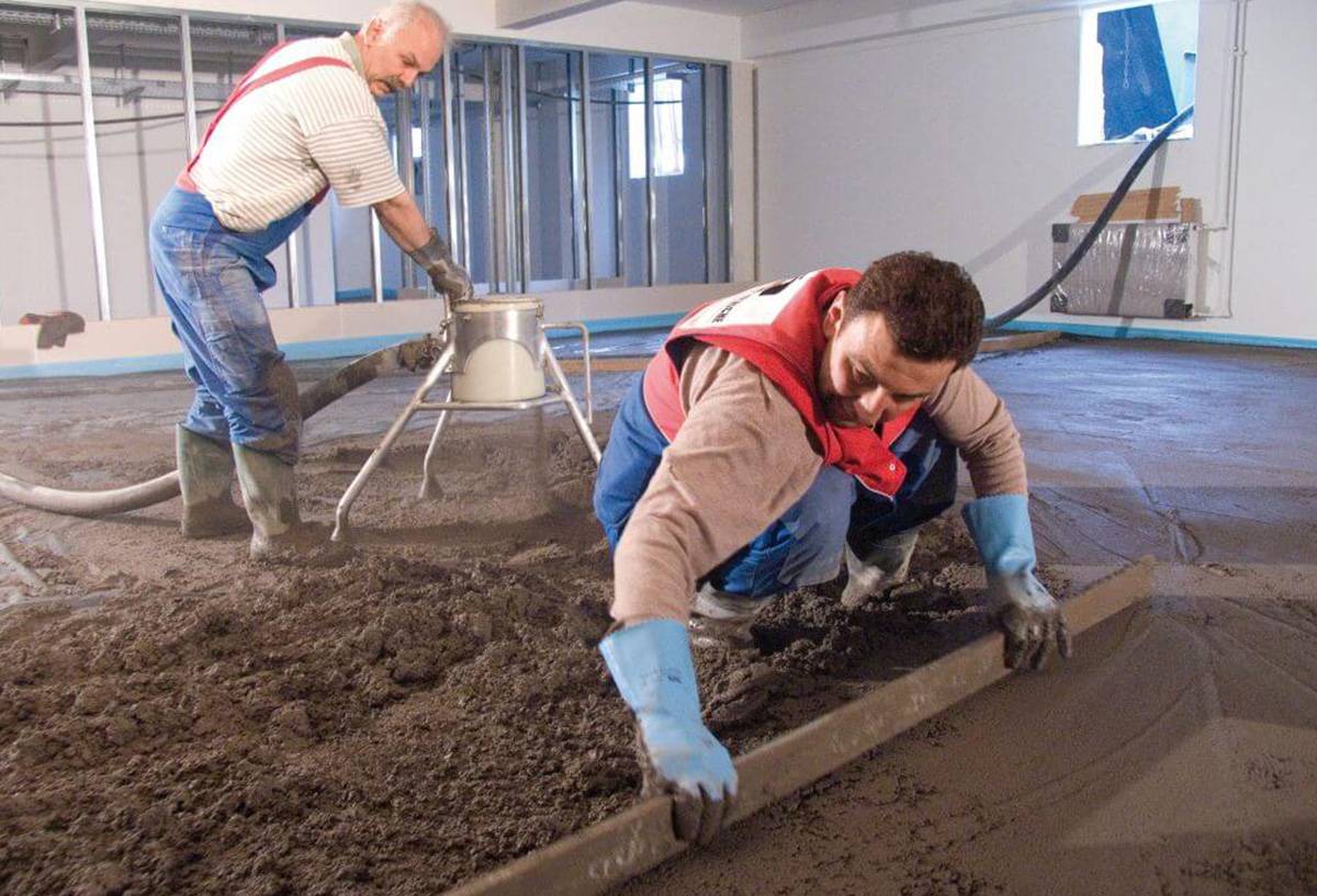 Положительный момент – приготовление раствора для данного вида стяжки производится вне помещения, поэтому будут отсутствовать загрязнения в виде цементной пыли и брызг.