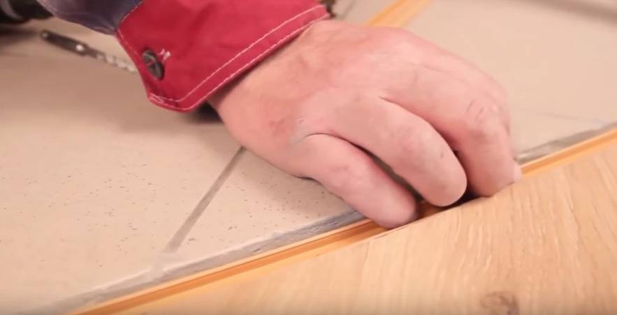 Самый распространенный вариант, шов между ламинатом и плиткой получается идеально ровным