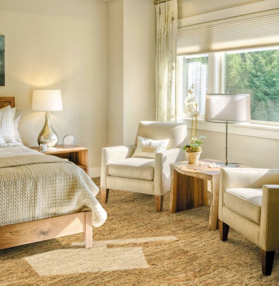 - в спальной комнате (на пробковое покрытие комфортно встать босыми ногами);