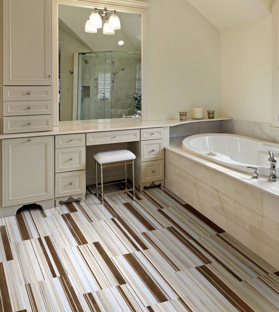 Такую плитку можно использовать и в помещениях с повышенной влажностью. Плитка может быть как клеевой, так и замковой.