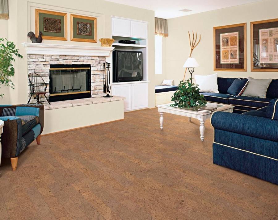 - в гостиной, где декоративные возможности пробкового покрытия могут способствовать созданию стилевой гармонии и уникальности общего интерьера.