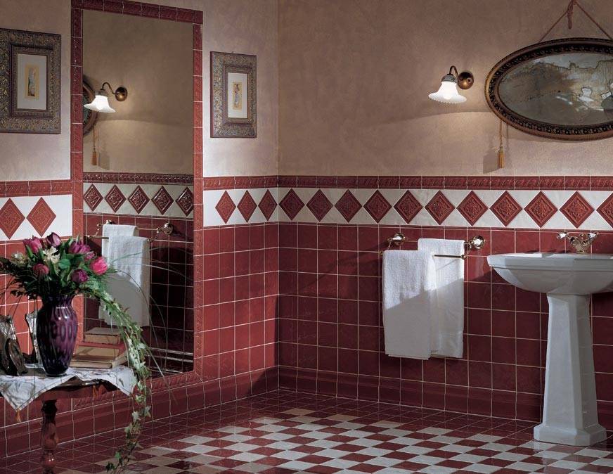 В большинстве случаев декор и фоны имеют одинаковые размеры и форму. Бордюр имеет такую же длину, но он гораздо меньше по высоте. Напольная плитка чаще всего квадратная. В некоторых коллекциях эти элементы даже имеют несколько вариантов, но в одном помещении для хорошего ремонта будет достаточно 1 светлого и тёмного фона, 1 вида декора и напольной плитки.