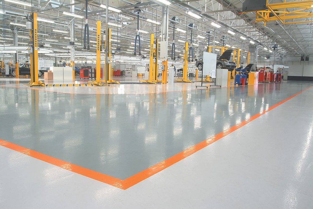- В состав наливного пола включаются химически стойкие компоненты, которые не разрушаются под воздействием кислотной или щелочной среды, что особенно актуально для торговых, складских и производственных помещений.