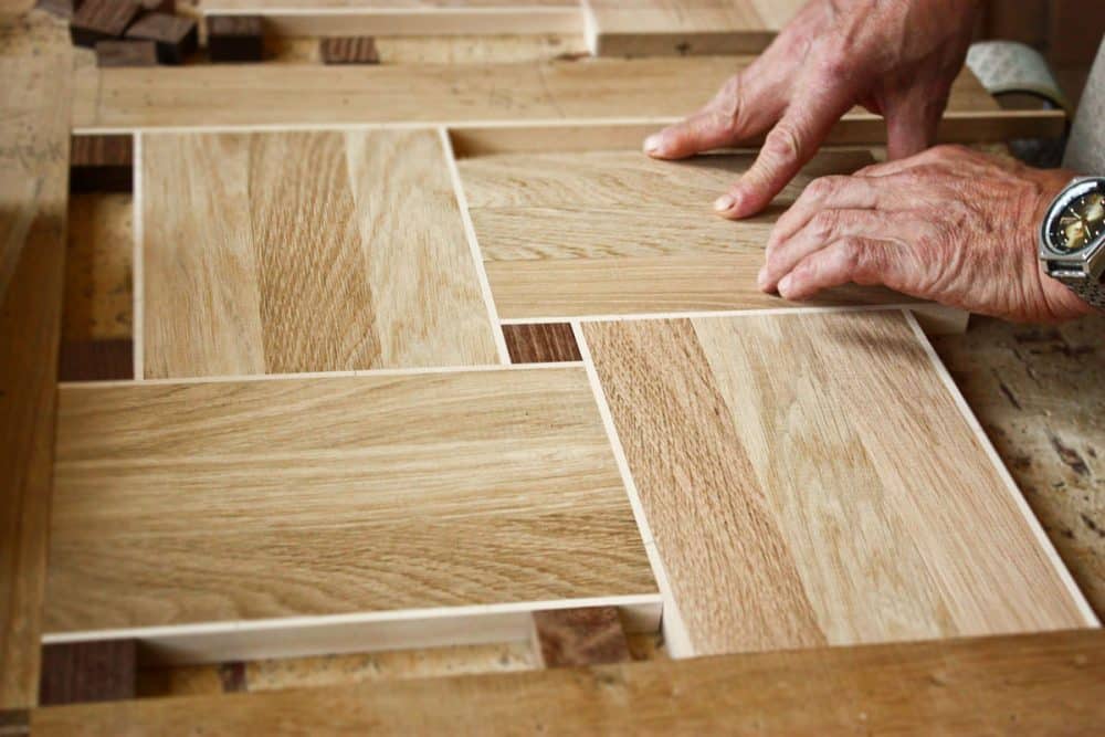 Укладка художественного щитового паркета — его легче стелить, но при этом приходится подгонять рисунок
