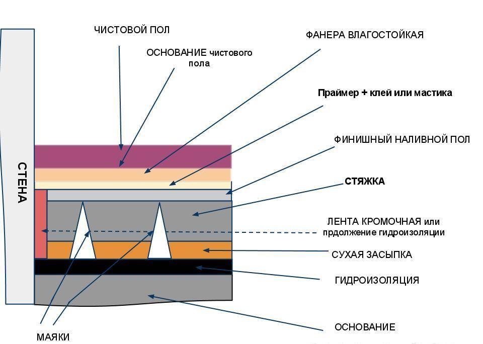 Ну а теперь непосредственно о том, как правильно залить стяжку в ванной комнате.