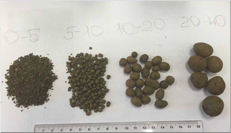 - Разница в размере. Рекомендуется внимательно осмотреть зерна в мешке. Если среди них попадается крупный щебень при заявленном размере зерна 5–10 мм, то этот материал некачественный. Кроме того, керамзит должен быть полностью сухим.