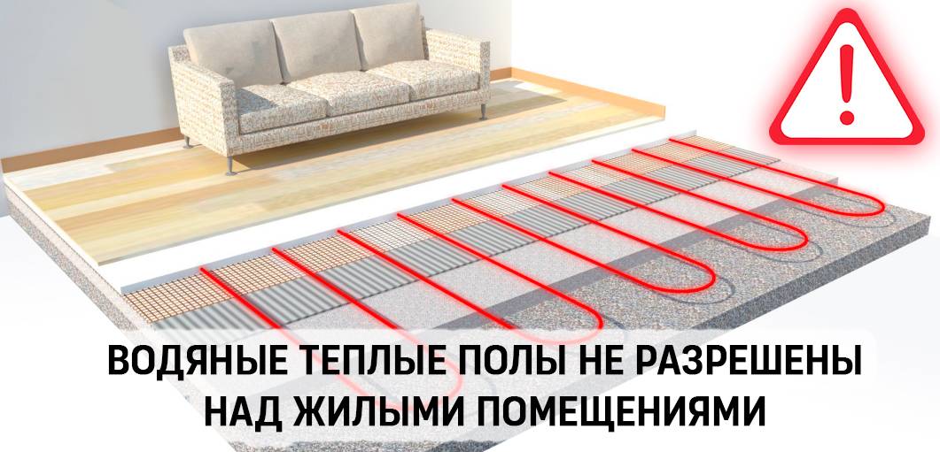 - Запрещена установка водяных полов без специального разрешающего документа в многоквартирниках. В противном случае на вас будет наложен штраф.