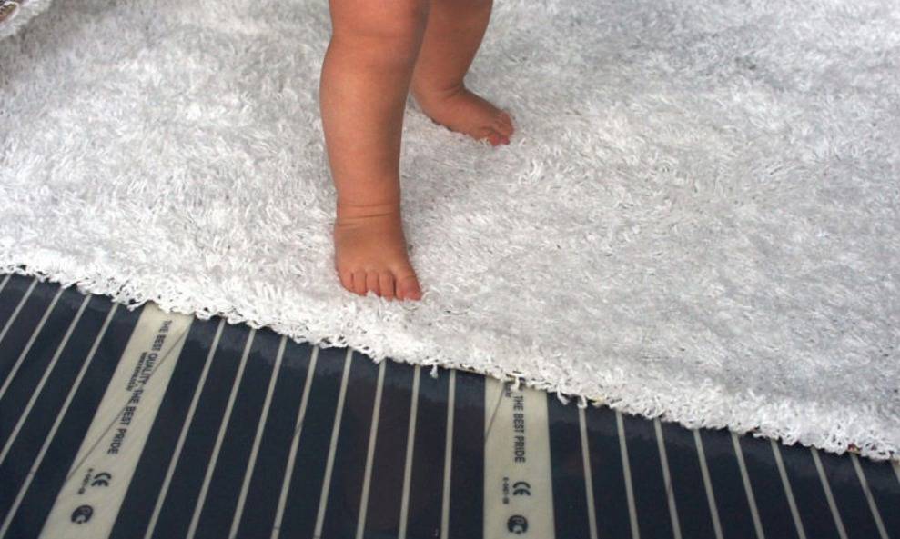 Чтобы обеспечить ребенку комфортную температуру стоит под ковер постелить теплый пол. И тогда вашему малышу простуда будет нестрашна, а игры на полу доставят только положительные эмоции.