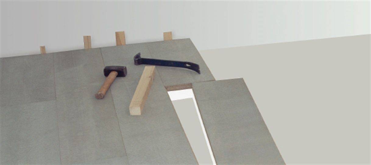 Чтоб оценить объем подготовительных работ, нужно тщательно исследовать черновой пол, выявить скрипящие, расшатанные, изношенные и поврежденные половицы. Если поверх деревянного основания был уложен линолеум, который планируется заменить плиткой, его придется снять, основание должно быть жестким. Поверх старого паркета или ламината плитку можно укладывать, если его состояние соответствует всем требованиям.