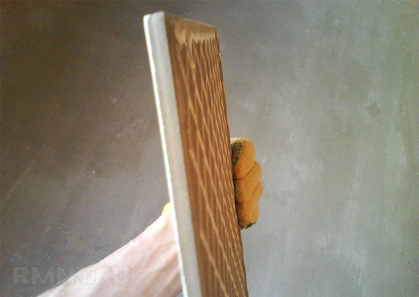 Готовая подложка при необходимости еще раз обрабатывается – ее ошкуривают, выравнивают шлифовальной машиной или электродрелью с наждачной насадкой.