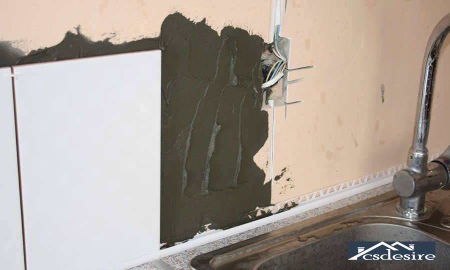 После того как все замеры выполнены и все перечисленные особенности учтены можно приступить к укладке плитки. Укладку выполняют традиционным образом, за исключением на несения клея. При укладке плитки на ровную стену клей наносится специальным зубчатым шпателем. В случае с не ровной стеной этот метод совершенно не работает. Поэтому следует поступать по-другому.