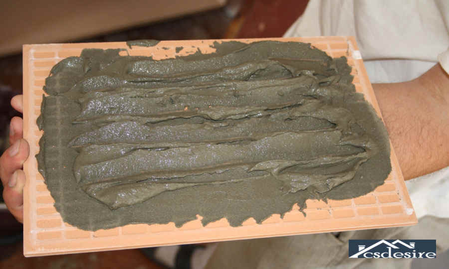 Также важным нюансом того, как класть плитку на неровный пол, является определение оптимальной концентрации плиточного клея. При стандартной укладке плитки клей можно готовить четко по инструкции с упаковки, а в случае с неровной поверхностью процесс видоизменен, т.к. закрепляться плитки будут нестандартным способом.