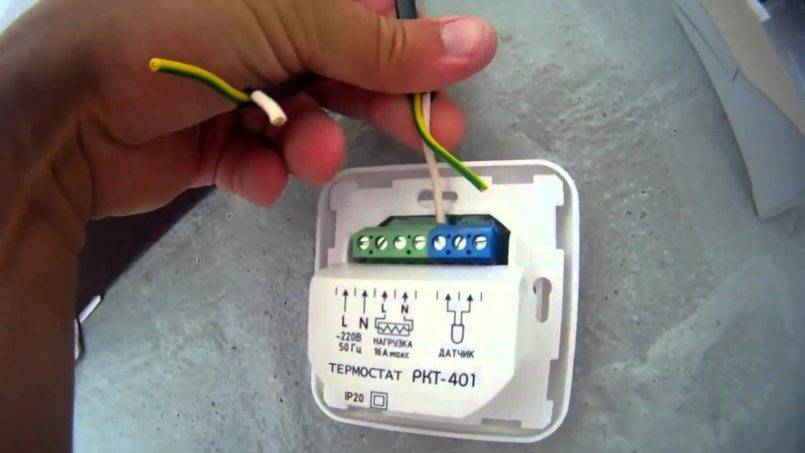 Стандартный терморегулятор тёплого пола идёт в комплекте поставки с подробной инструкцией подключения прибора к системе тёплых полов. Можно подключать ТР самостоятельно, пользуясь обозначениями под клеммниками.