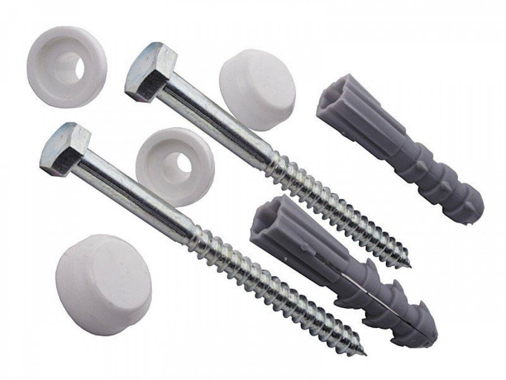 Болты затягиваются, но осторожно, иначе будет риск повредить чашу. После этого шляпки скрываются специальными накладками из пластика