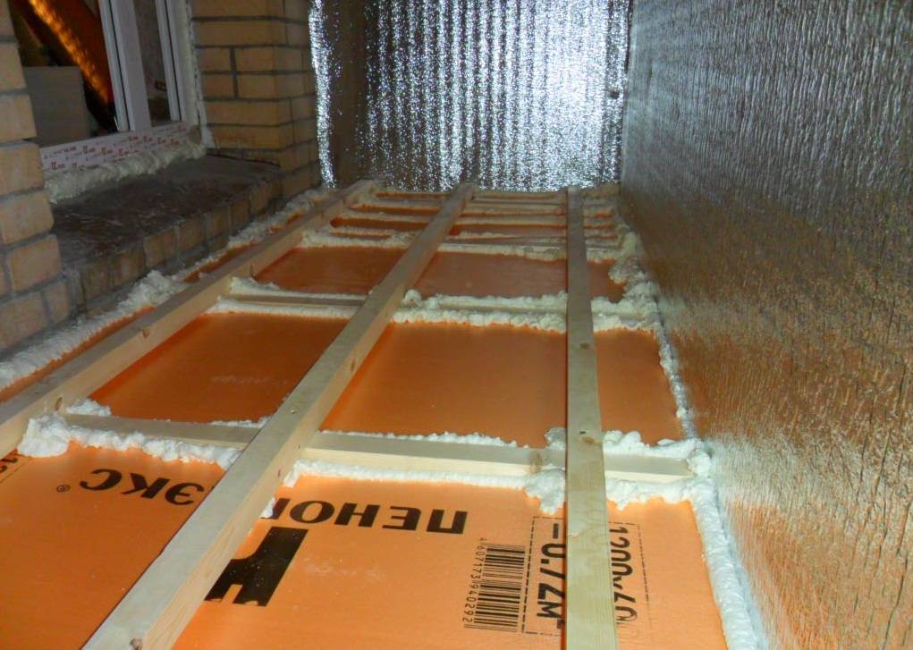 Работы по утеплению пола лоджии пеноплексом могут проводиться разными методами: