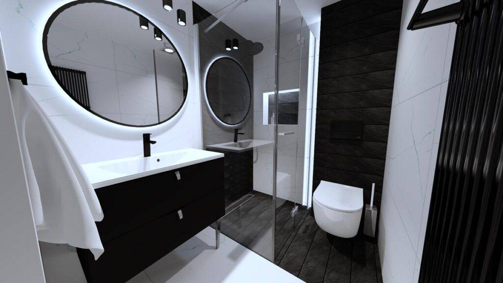 Если вам нравится дизайн ванных комнат в гламурном стиле или с элементами ретро, остановите свой выбор на черном корпусе для ванны. Люстры с многочисленными украшениями также отлично подходят для высоких ванных комнат. Однако с количеством украшений не стоит перебарщивать, чтобы не перегружать интерьер, особенно если это небольшая ванная комната.
