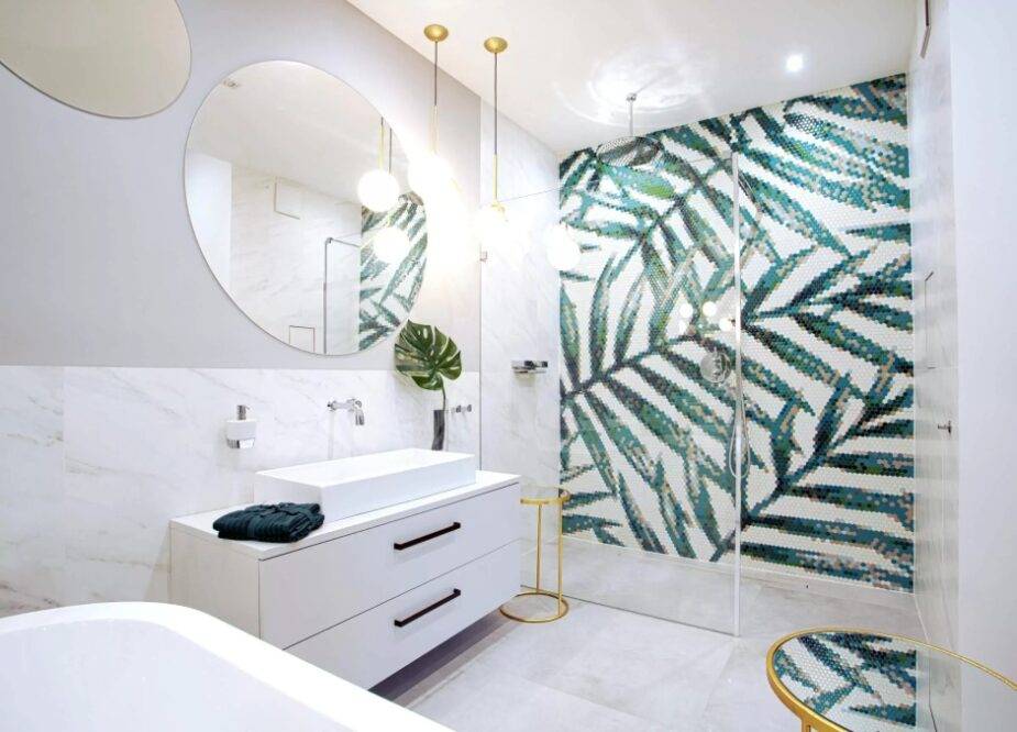 Задача, чем отделать стены в ванной, должна решаться одной из первых. Здесь множество вариантов: от всегда актуальной плитки до нестандартных решений, например, линолеума.