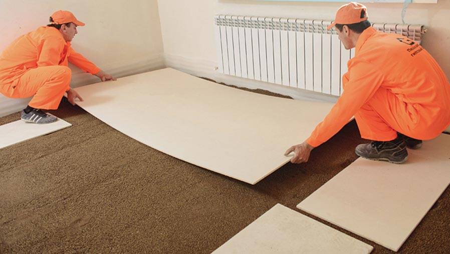 Эта стяжка называется сухой, потому что, в отличие от традиционного метода, технология не предусматривает даже грамма воды. Часто эту стяжку используют для выравнивания полов под ламинат, плитку и другие виды отделочных покрытий.