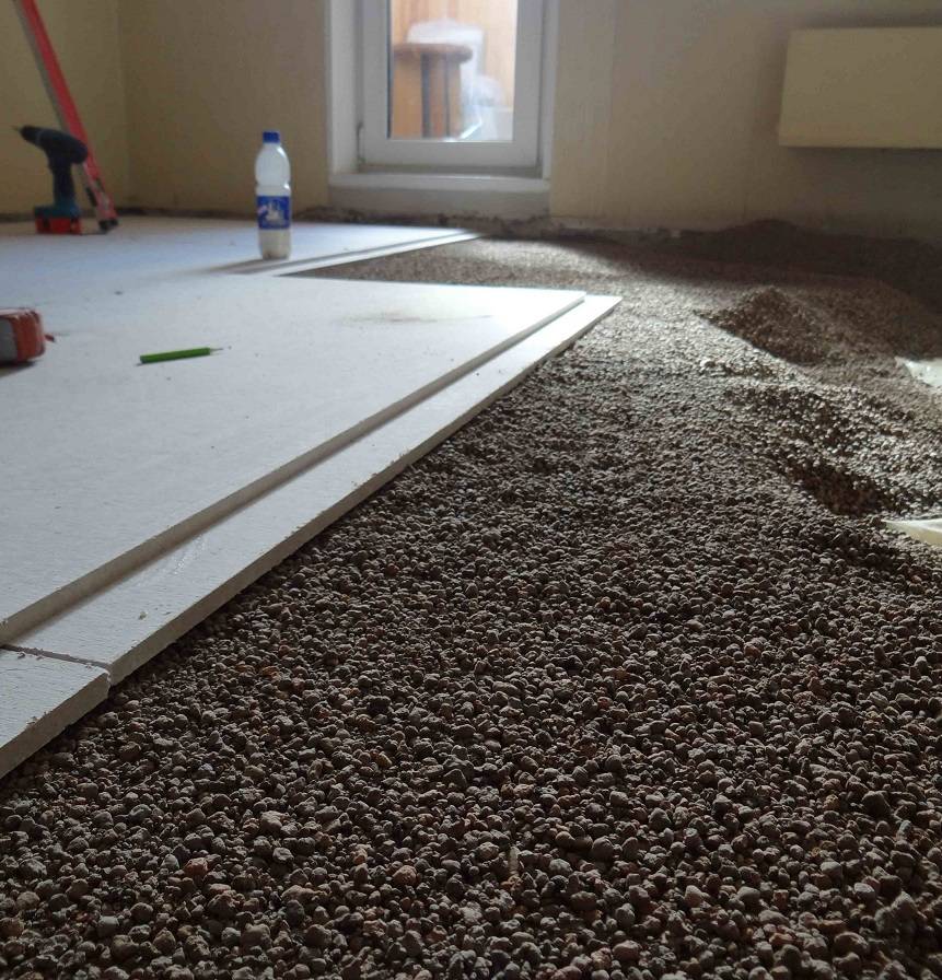 В качестве сухой засыпки используется керамзит, перлит, вермикулит, а также готовые смеси от ведущих производителей строительных материалов.