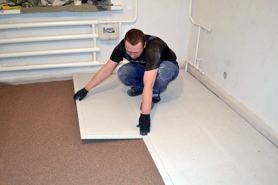 Применение для ванных комнат сухой стяжки проводится относительно редко, при этом обязательным этапом является укладка гидроизоляционной пленки, а также дополнительная защита и влагостойкость покрытия.